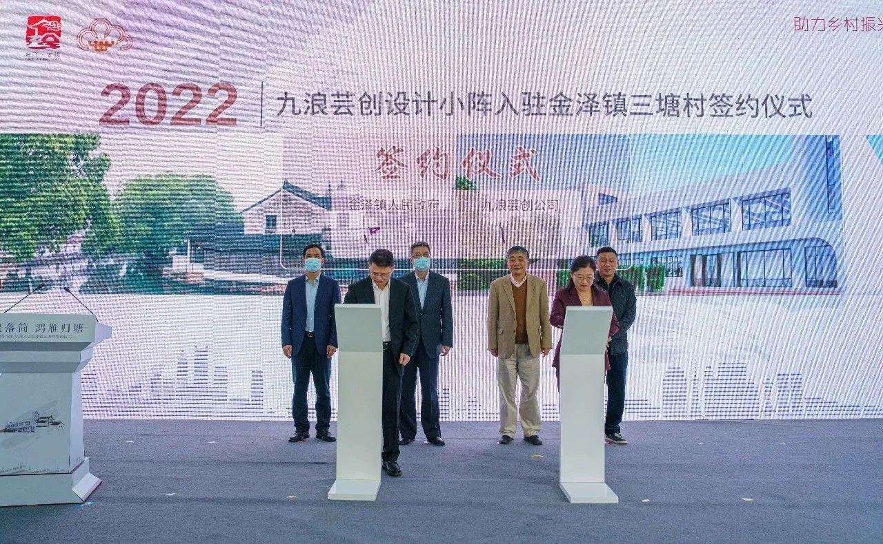 11月18日,“九浪芸创设计小阵”项目入驻金泽镇三塘村签约仪式在上海淀山湖畔隆重举行。